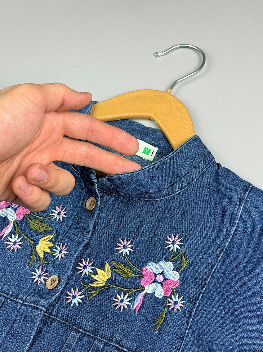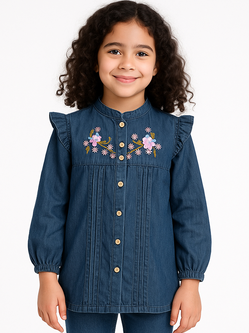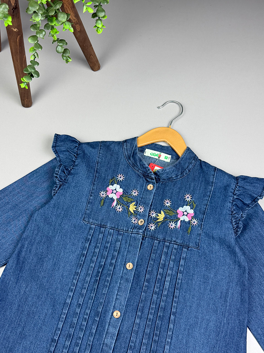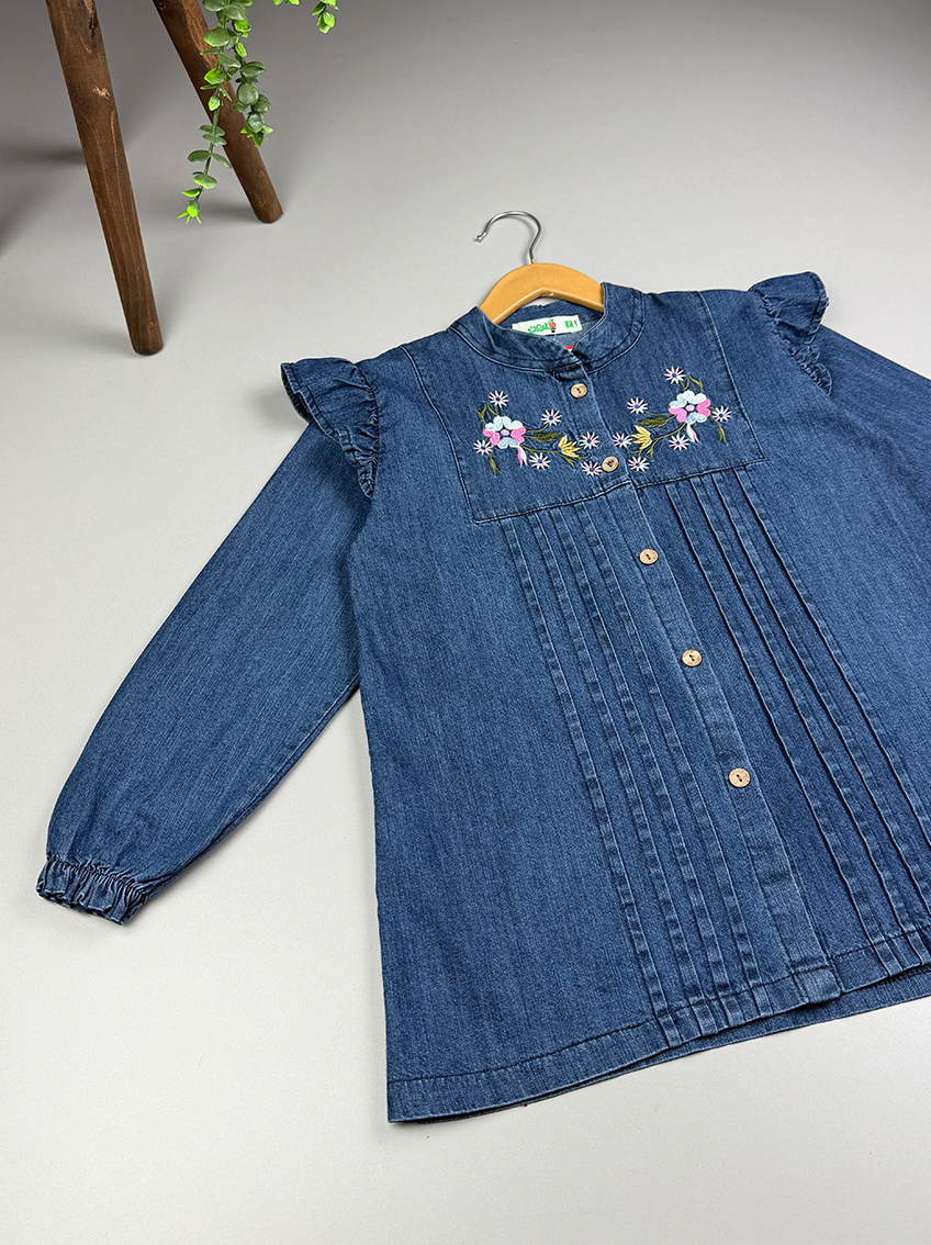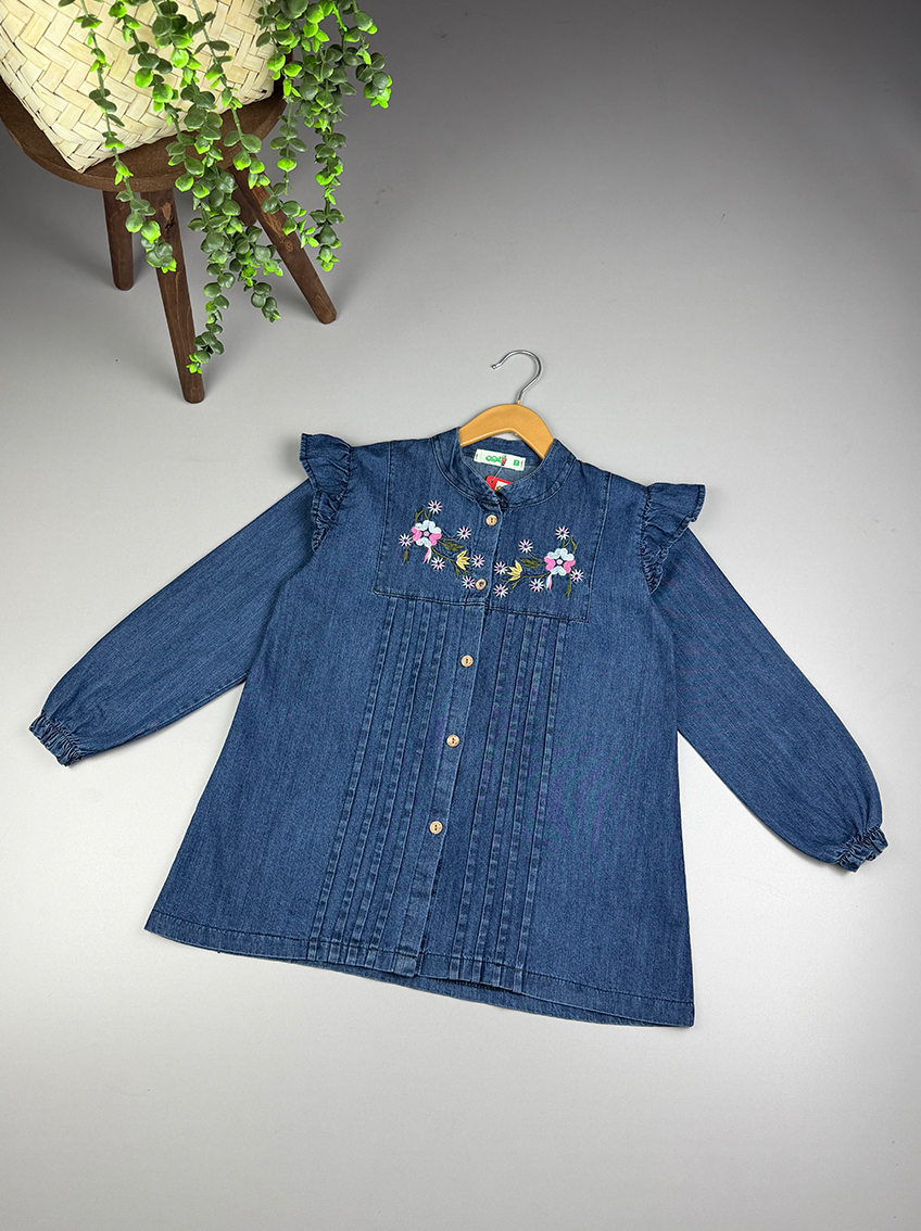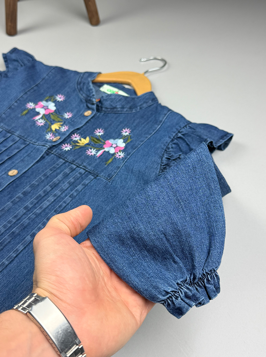 شومیز جین با سرشانههای چیندار و گلدوزی روی سینه ????
